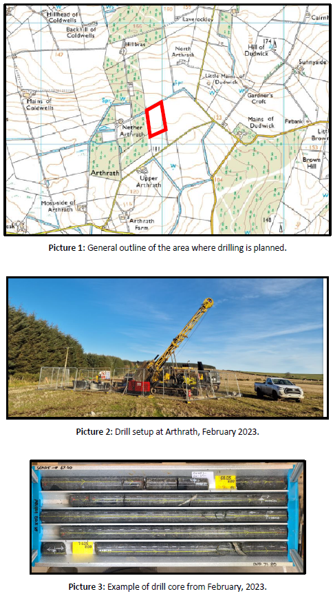 We are planning to carry out a brief programme of mineral exploration drilling works at the Upper Arthrath farm property, near Ellon, AB41 8YP, as indicated in Picture 1.